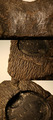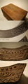 古くから知識人たちのあいだには考古学、博物学的興味が高まり、特に江戸時代後期ごろの文人趣味の流行のときには、発掘された瓦の残欠を加工して硯にすることが、当時の文人の何と云うかスタイリッシュな趣味の良さを表すアイテムだったようです。各地の瓦が硯に加工されていますが、この瓦の生まれを本で探したところ、福岡市南区にある老司瓦窯から発見された瓦が同じものであることがわかりました。ここの瓦は大宰府観世音寺の創建に使用されたことがわかっています。実物を見ても瓦当氾に劣化が見られないので創建瓦であろうと思われます。瓦窯址からの発掘か、観世音寺からの発掘かはわかりませんが、瓦の質感から江戸時代頃に発掘されて硯として愛用されてきたのだと思われます。長いあいだの手擦れで黒光りしています。唐草文と鋸歯文、珠文の組み合わせは藤原京様式を窺わせ、この地の中央とのつながりを感じさせます。古代には大陸の玄関口であった筑紫の地、近くには豊後の宇佐八幡宮があり独特の権力構造があったのかもしれません。いにしえに想いを馳せてこの硯で一文したためてみては?。