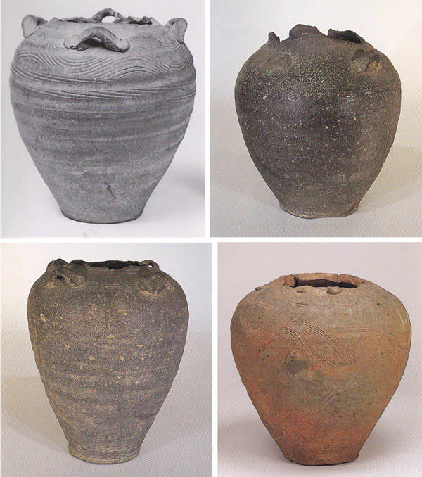 櫛目紋は、連弧であったり、波状であったり、リズミカルに肩を一周しています。