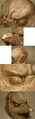 胡粉の剥落、擦れ、亀裂などがあります。また下顎部分の欠損、耳の部分は毛が植えられていたように思いますがそれは無くなっています。