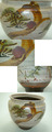 三階松を二つ重ねたもの、反対側にはつんつんと枝が奔放に伸びた老松でしょうか、鉄釉で表した太い幹がたくましい印象です。ベースには白化粧した刷毛目が見えて絵を引き立てます。
