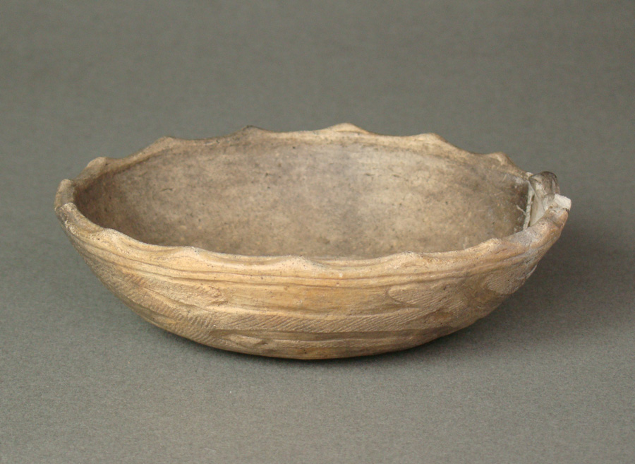表面につやがあるのは成形したあとに研磨して仕上げるからですね、並品はともかく、こういう上手のものは必ずと云っていいほど表面を研磨して仕上げていて、文様のうねりの見事さには思わず瞠目させられてしまいます。口縁は王冠のような突起が付けられ、変化が愉しいものになっています。