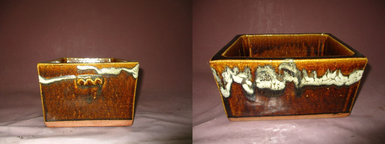 掲出の「鰊鉢」 は、普通の飴釉とは少し違っており、縁の飴釉 が窯変した 実に美しい鰊鉢です 。欠損もそげもございません。