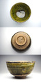 伝世の青織部茶碗です。釉はよく溶けて深い翠色を呈し、轆轤目強く、手の早さを感じる高台の削りなど見所の多い茶碗です。また、窯変で口縁全体が黒く発色し、全体の印象を引き締めています。