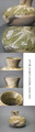 さて数ある須恵器のなかで、自然釉のきれいなものが好まれるのは道理ですね、窯のなかで焔が暴れて出来た巧まざる景色は堪らないものがあります。そういうことではこれは及第点を頂けるお品ではないでしょうか。黒い窯変と翠の自然釉の美しさは見事な景色を作り出しています。一部に釉の剥落が見られますが、これも厚くなったところはどうしてもはがれやすいものなので自然な成り行き、何よりこのつややかな膚は説得力があると思います。