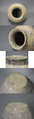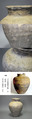 前置きが長すぎましたが、こちらは愛知県の渥美半島で焼かれた壺です。この窯は基本的に施釉する窯なので釉薬の刷毛痕が残るものが、いかにもそれらしく明快なもの、これも胴や頸部に黄土色の灰釉痕が明瞭に残っているのがうれしいところでしょうか。施釉は基本的にみな薄いので、このようにはっきりと残っているものは少ないものです。