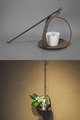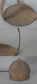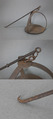 かぎ針のように先端を曲げて鴨居や軒などに吊ることが出来るようになっています。本体部分は三方向に伸びた枝金具で円板を吊るようになっていますね。ここに燈明皿を置いて芯を入れ灯して使用していました。