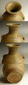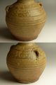 紀元前の漢の灰釉二耳壺です。首の付け根と耳に刻文、胴には筋線があります。銅器を模したものといわれています。使いやすい大きさですので花生として重宝するかと思います。