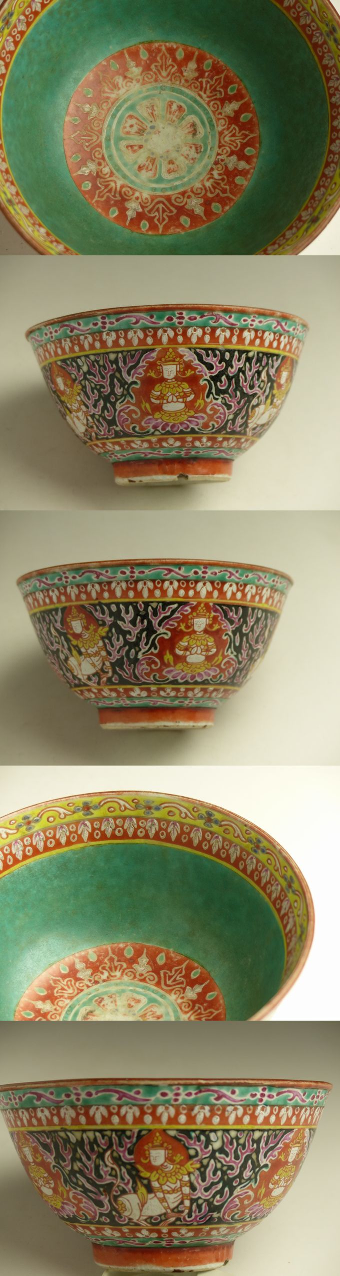 菩薩と半神半獣を描いたベンチャロンの色絵の碗です。ベンチャロンとは五彩という意味だそうです。