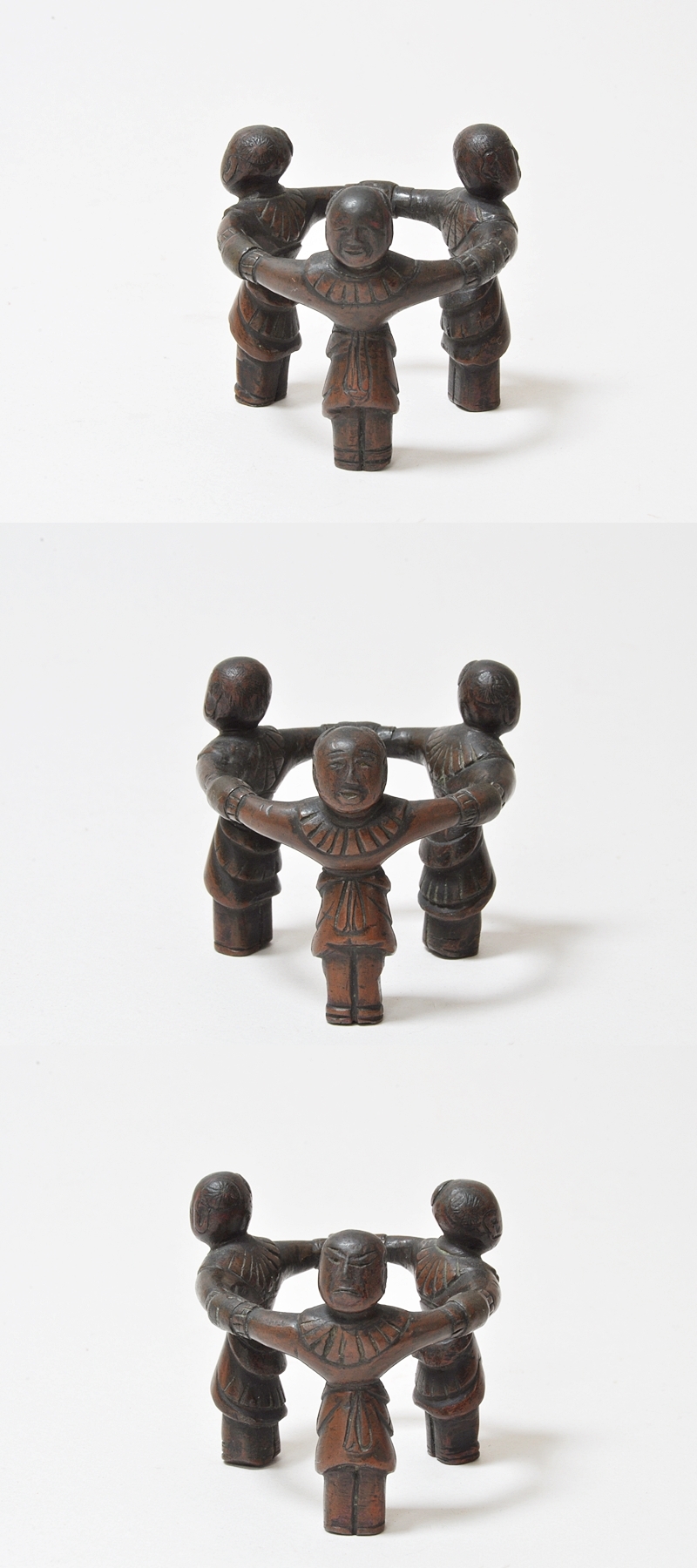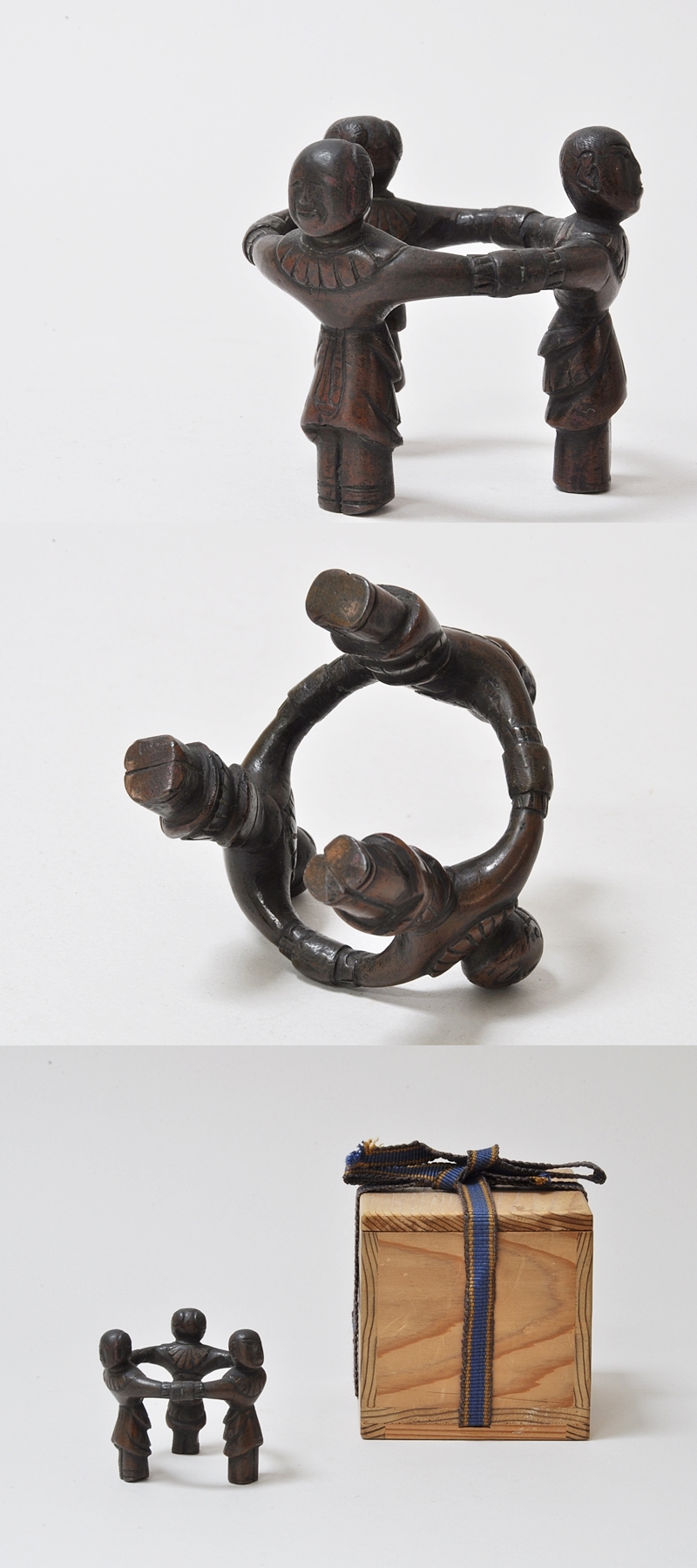 元来は墨台として生まれ、請来された後には蓋置等に見立てられた、三つ人形。