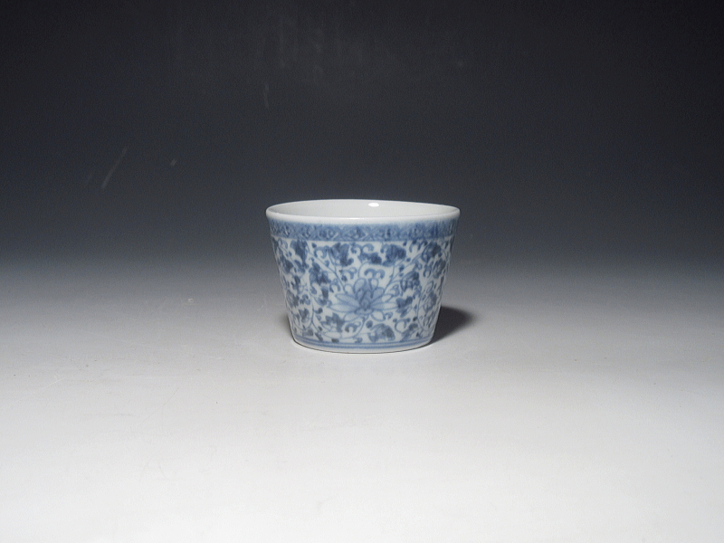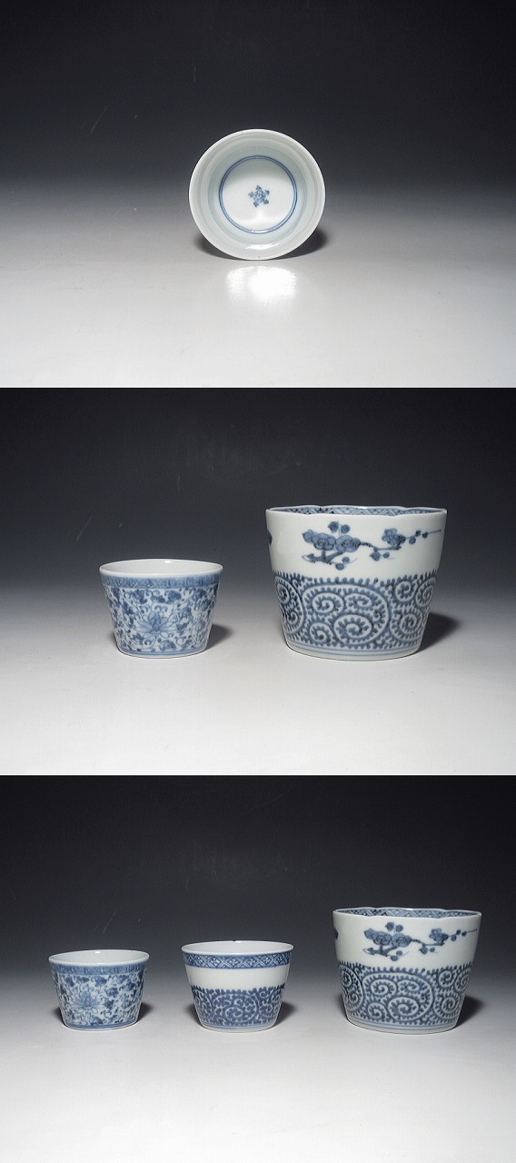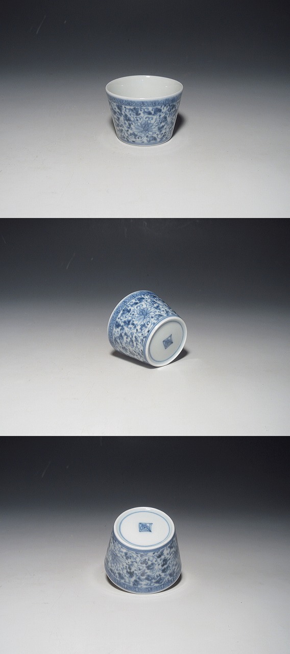 最終2枚の画像は、通常のそば猪口、同時掲載の蛸唐草文小猪口との寸法対比です。