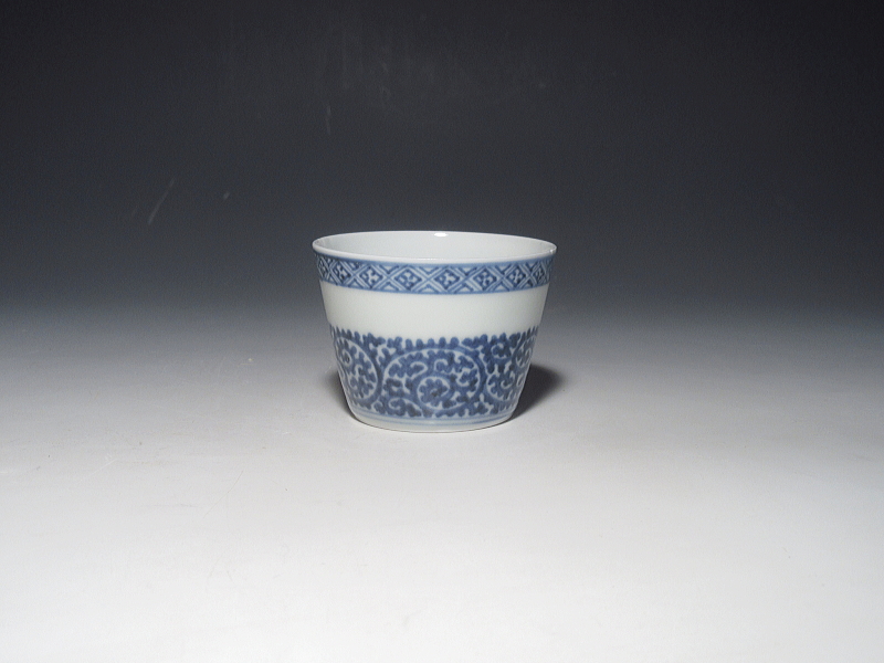 手取りです。最上部に四方襷文を描き、蛸唐草文は最下部。帯状の余白が上手く効いています。薄手の成形で、