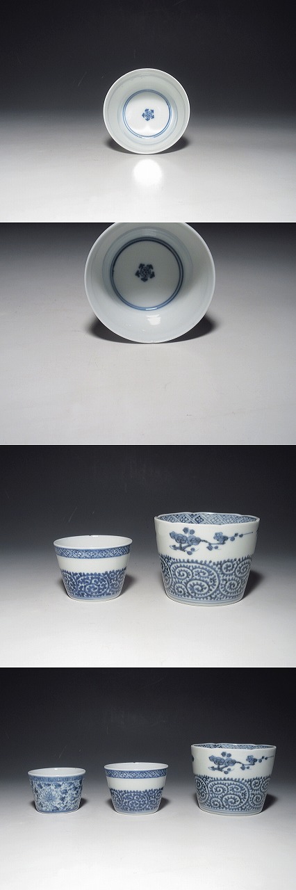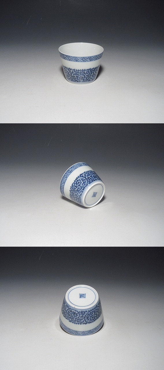 最終2枚の画像は、通常のそば猪口、同時掲載の花唐草文小猪口との寸法対比です。