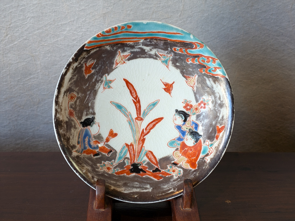 銀彩だけでなく、見込みの唐子や鳥もとてもよく描かれています。