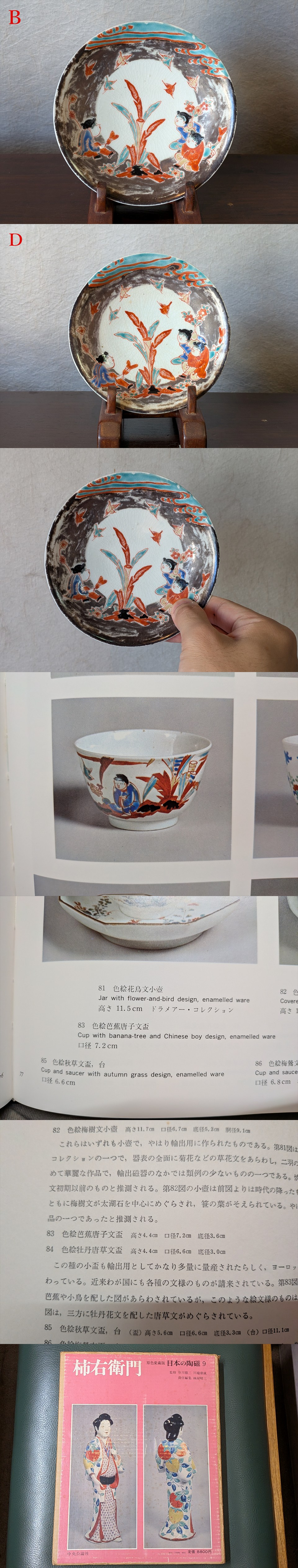 『日本の陶磁9 柿右衛門』(中央公論社)P77-No.83に類似の唐子と芭蕉をモチーフにした盃が見られます。