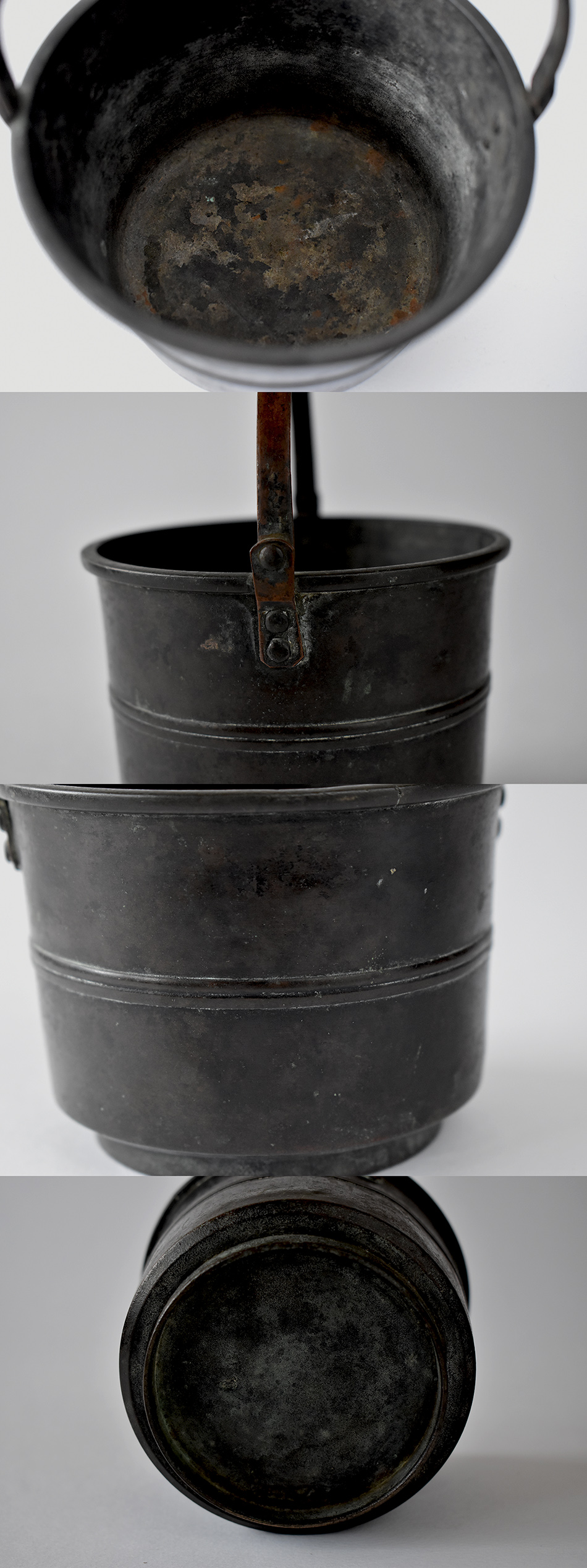 閼伽桶とは仏さまに備える聖水、つまり閼伽水を汲み入れて持ち運ぶ為の仏具です。昔から決まった形で作られ続けていて、巷間で目にすることが出来るのはほぼ室町時代から江戸時代くらいのもののようです。
