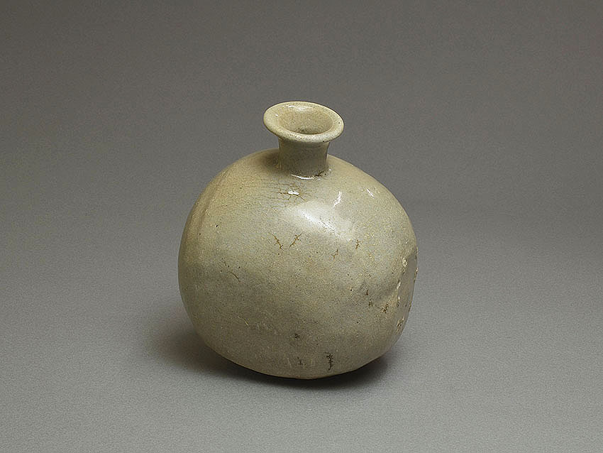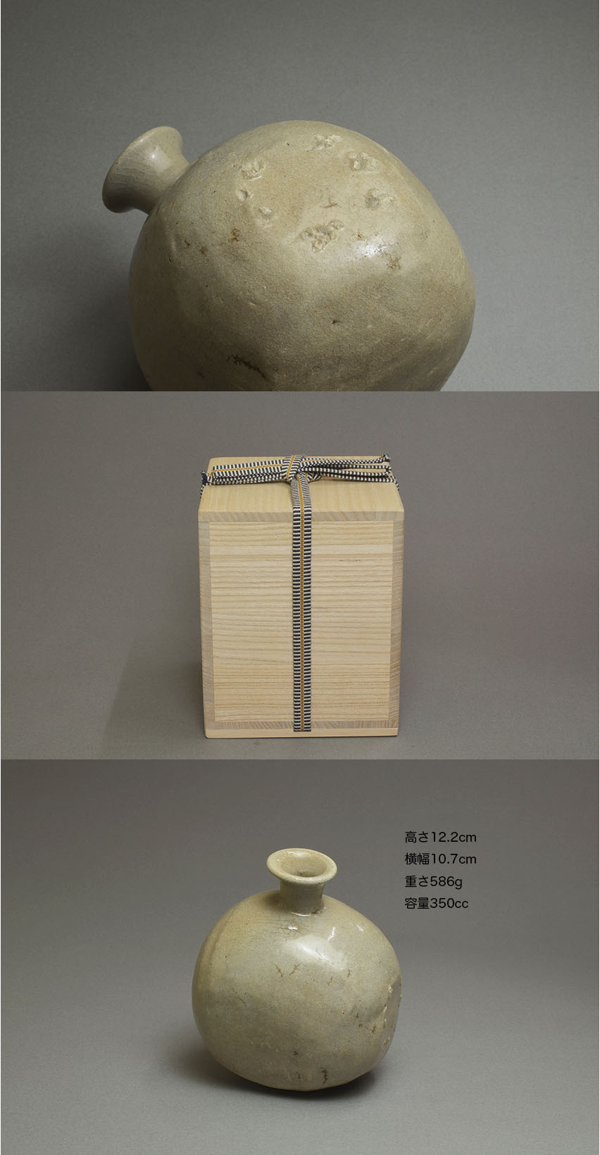 へんてつのない黄味ガチな上がりの中期の堅手俵形徳利です。