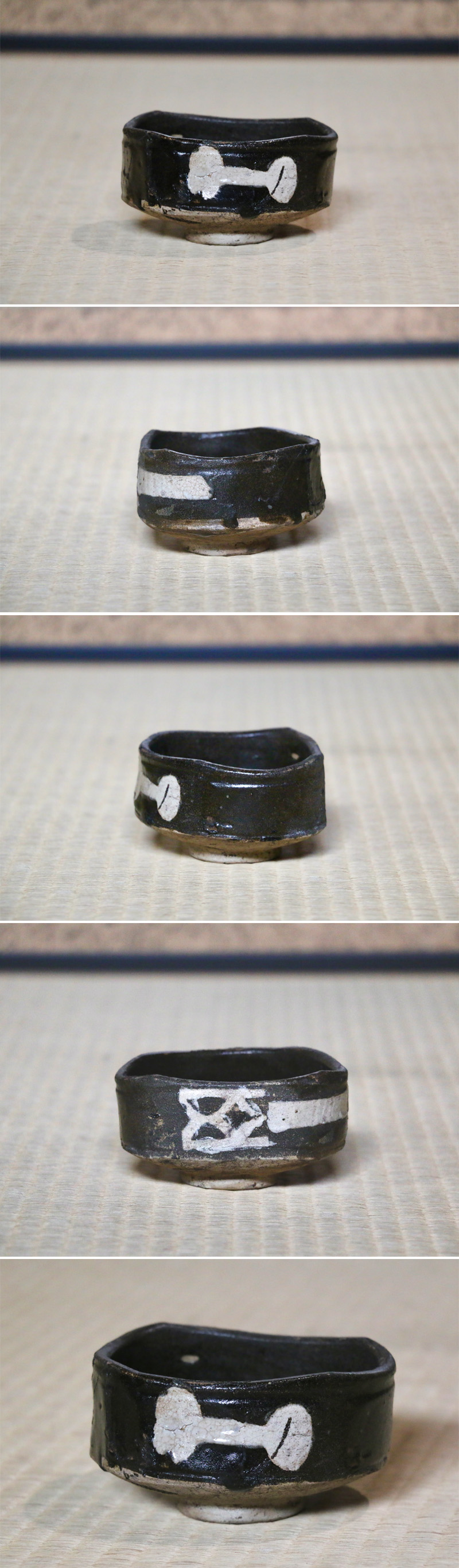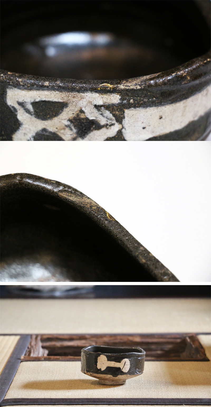 正面は理想的な艶やかな肌のあがりながら、裏面は火表の加減もありやや淡く艶やかさこそ欠きますが一部ホツレの補修のみでほぼ完器に近い貴重な黒織部です。