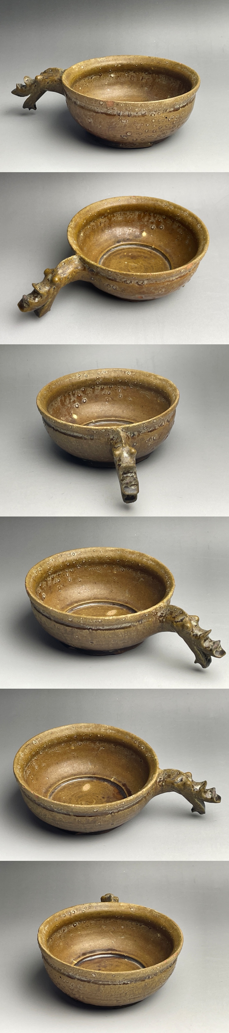 うまく青磁にならなかったようですが、越州窯の青磁碗です。漢あたりの作でしょうか。