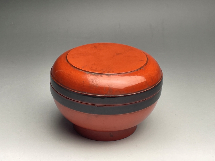 茶の二本の線が朱色を引き締めており、存在感が強めの合子です。