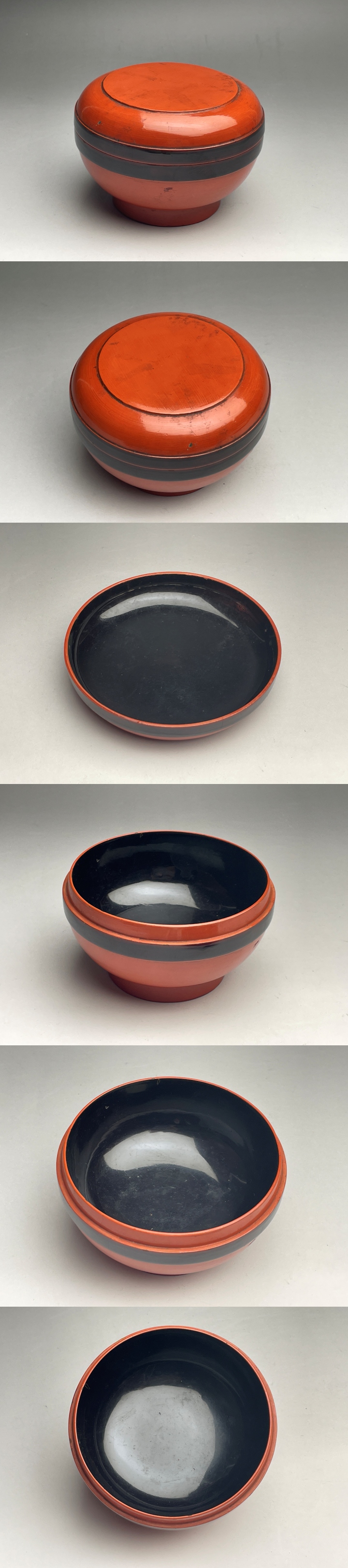 状態:蓋に当たり疵が一ヶ所、身の方に当たり疵一ヶ所、身の茶の漆にふくらみと割れ線があります。