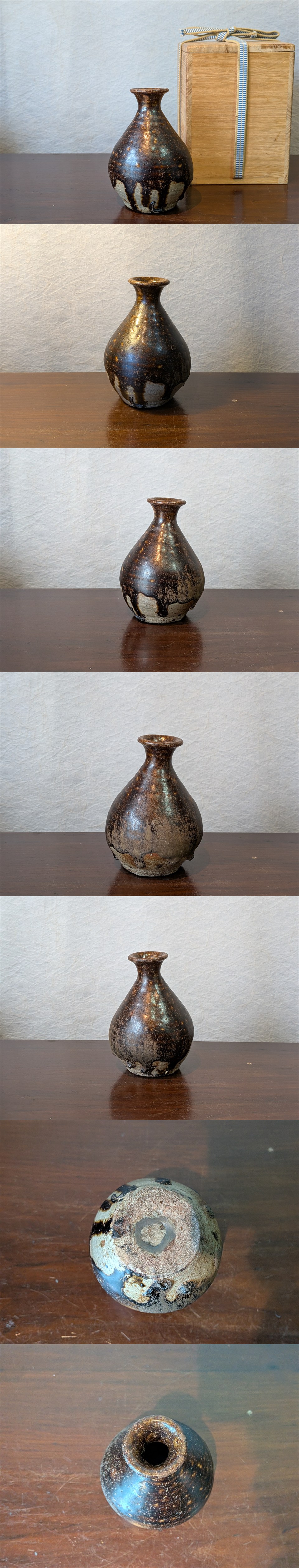 黒に近い飴釉に籾殻(もみがら)高台から、恐らく朝鮮唐津で有名な藤の川内窯の品物と思われます。