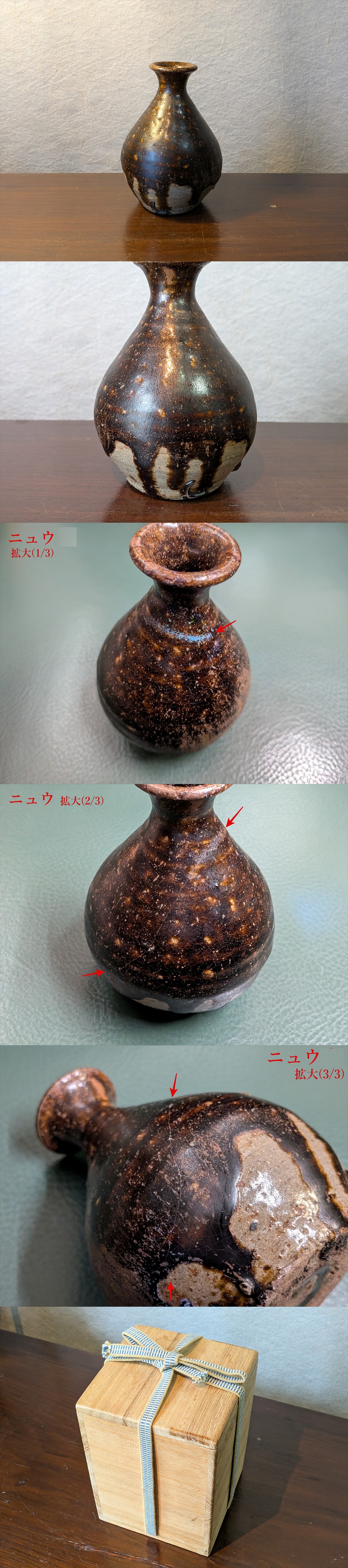 (注):胴部に磁貫が1本、高台部に銀修理がございます。写真に印を付けましたので、ご確認・了承の上、ご購入下さい。