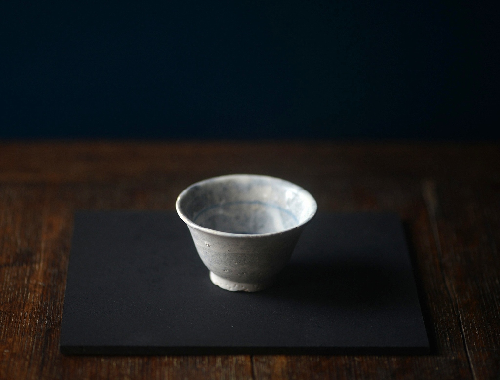 デルフトの輪線文盃です。もとはティーカップだったもので、見つかるもののほとんどが発掘品で割れているのですが、こちらは若干のカセとニュウが1本あるものの良い状態です。水を入れ数時間おきましたが、漏れはありません。