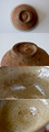 お茶わんに見込みの鏡と呼ばれる茶溜まりがあるのがまず一つ、腰が張ったフォルムで見込みがやや深いのがまたいいですね。そして高台が片薄の三日月になって兎巾が立つ部分のヘラ使いがなまなましく表れているところもまたたまらない景色です。
