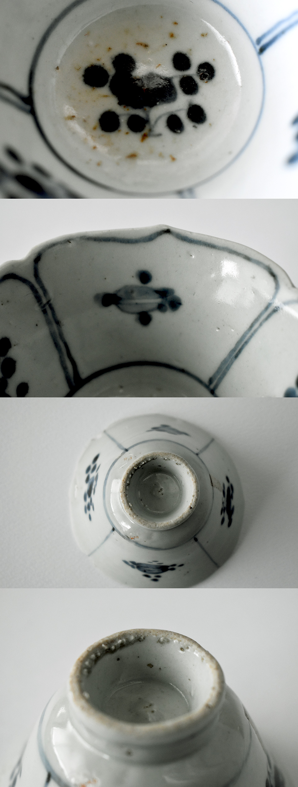芙蓉手と呼ばれるもともとは中国のお手本を日本で写していったものですが、創成期に日本に渡ってきた中国人陶工の集団が生み出したのでしょう。本歌にもあるナズナ手が主文様として内外に描かれています。間を仕切る線は蓮弁状の形になっていて、これなども多分に大陸的ですね。