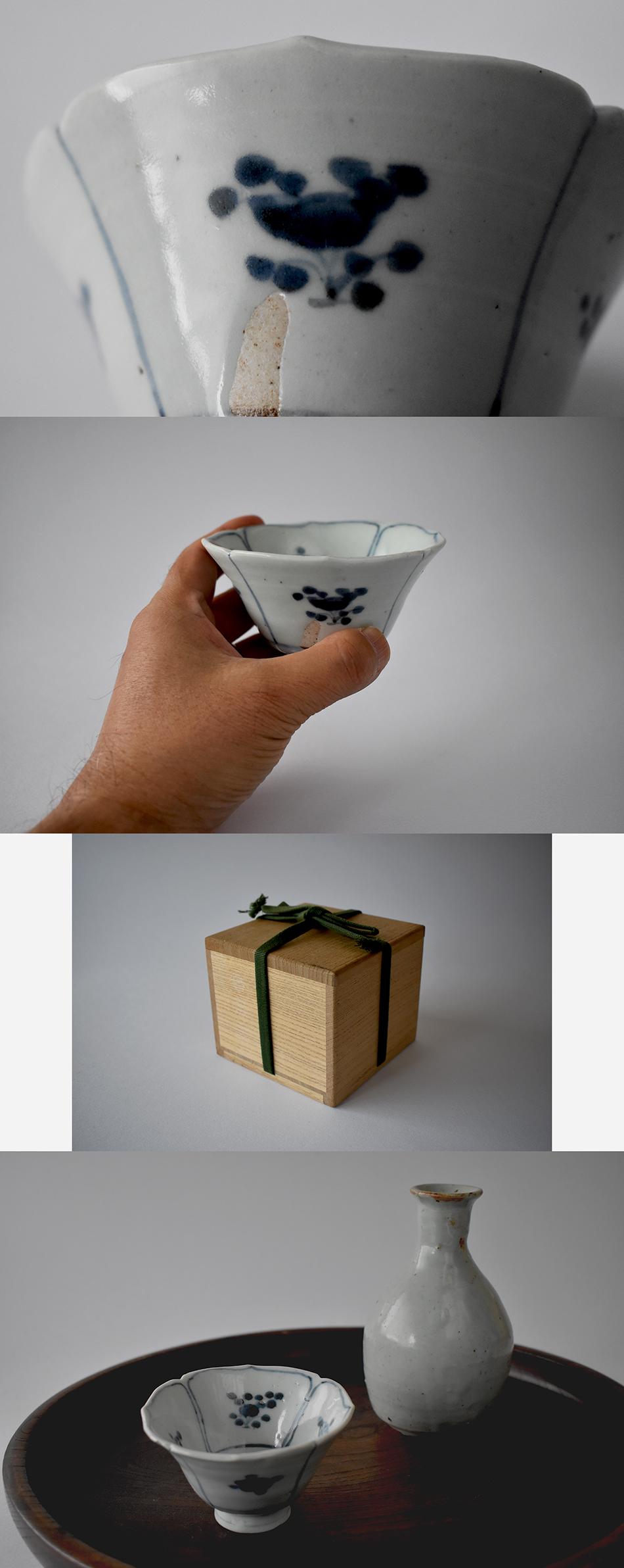 もちろん酒盃として生まれているわけもなく、向付として数十客単位で揃えられていたのでしょうが、こうして一人旅になってしまったからにはやはりお酒で愉しみたい、見立て酒盃として大いに活躍してもらえたらと思っています。