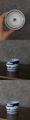 遠くにそびえる富士山と馬に乗る人物文を2方に絵付する。