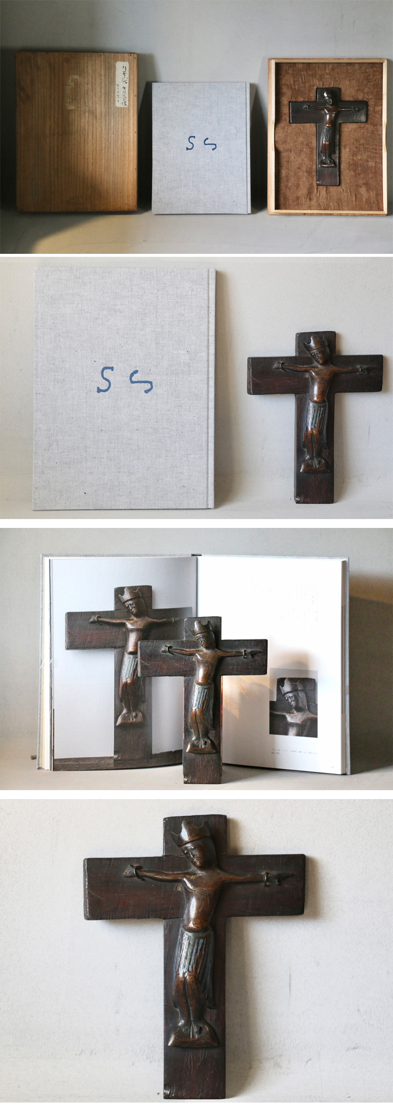 この磔刑像は十字架もしくは福音書の表紙をかざっていたものかもしれない。いずれにしても聖堂では祭壇前におかれ、祝日には、行列で高くかかげられたことだろう。(金沢百枝)