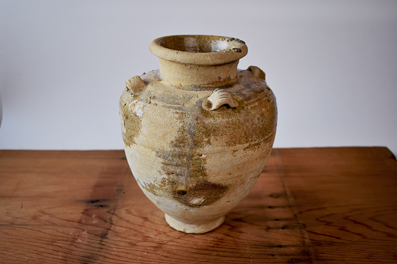 こちらは鎌倉時代の瀬戸の壺に酷似していますが、素地が明らかに違いもっとザラッとした砂っぽいもので、フォルムも撫で肩で高台が小さく低めの特徴から美濃須衛の製品であることがわかります。
