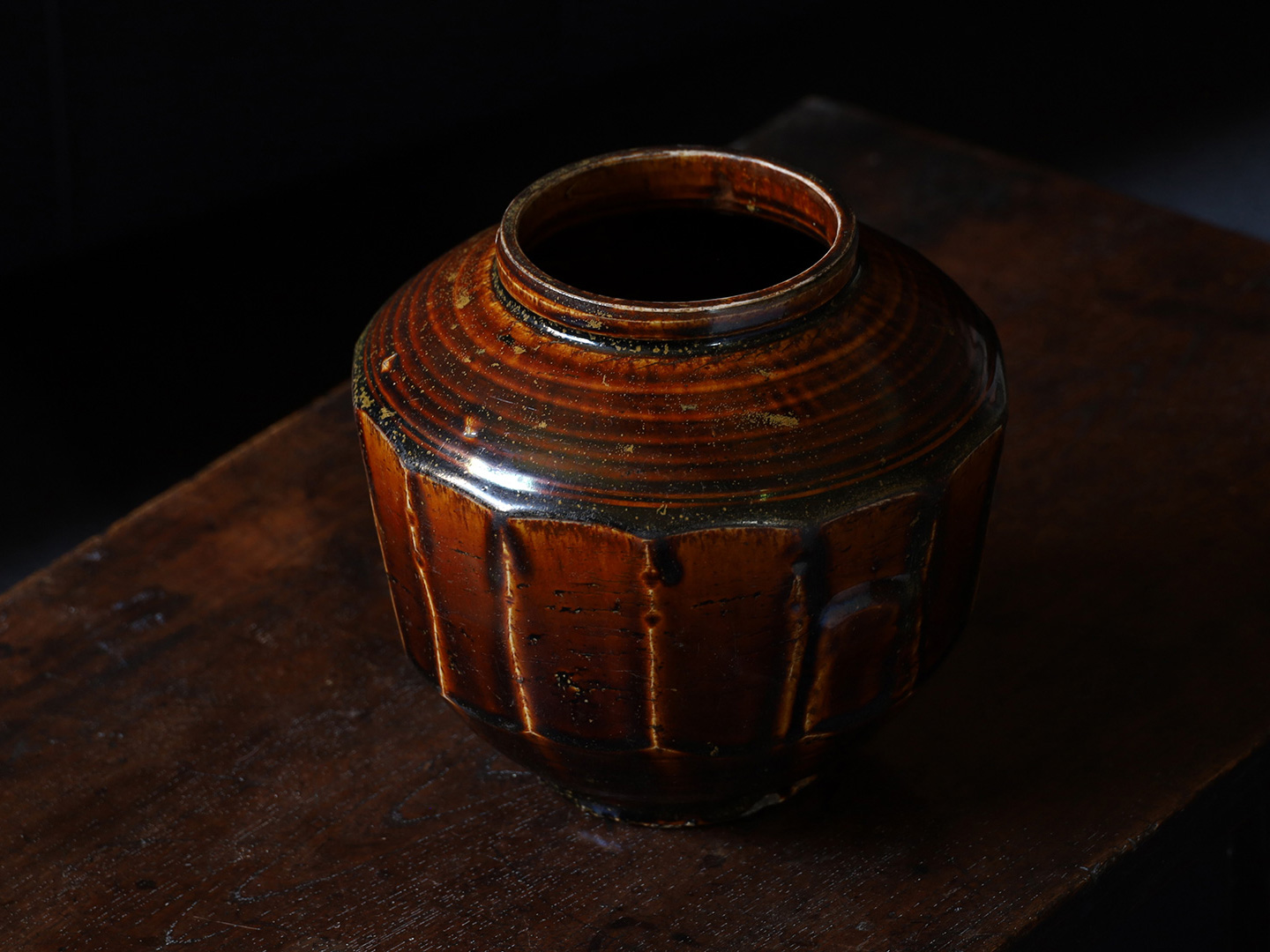 李朝後期に制作された飴釉壺です。