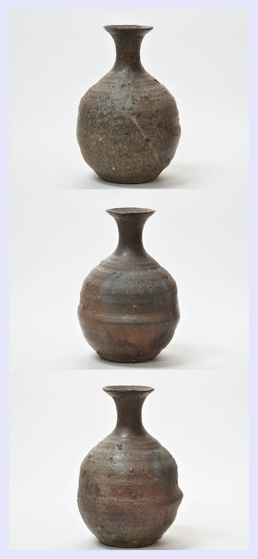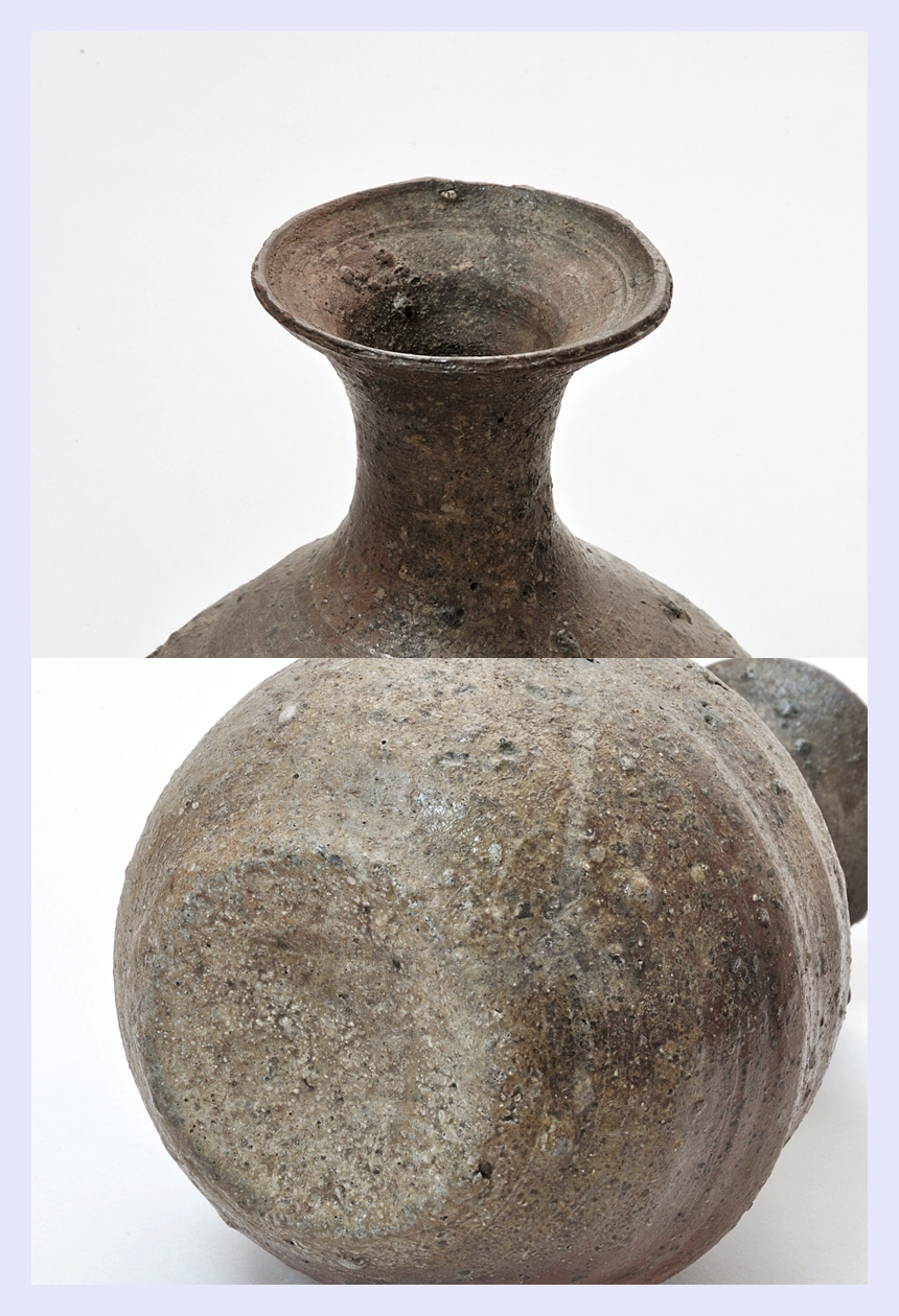 和様的な姿が珍しく、轆轤目が顕著に表れた胴部に、赤味や焦げの散見出来る釉膚等、見どころの多い南蛮徳利です。