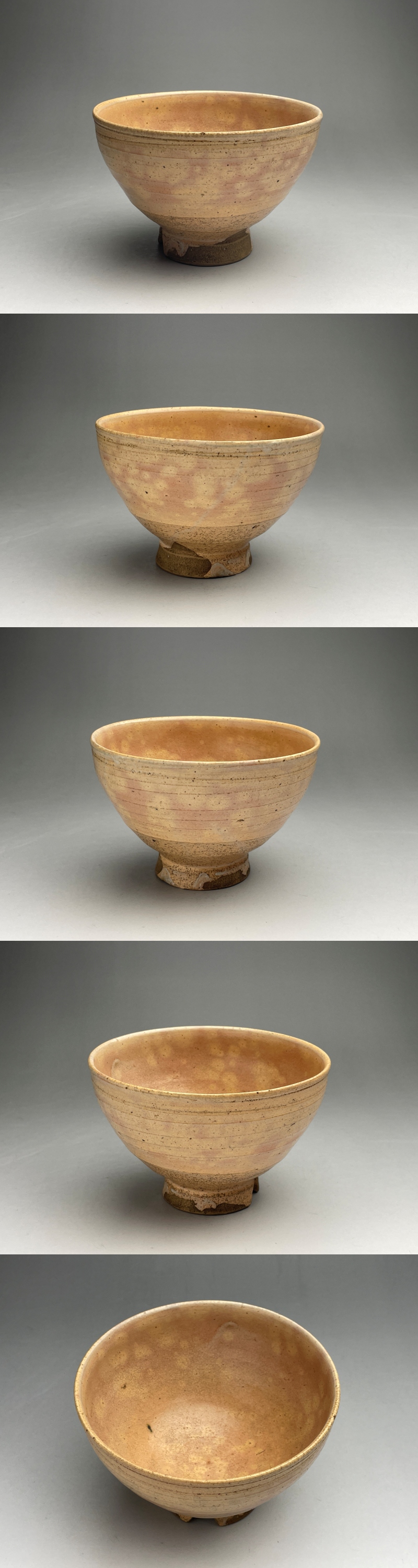 深さがあるせいか大きく見えますが、大茶碗というほどではなく、ほどよい大きさかと思います。御本やろくろの跡も美しく見どころの多い茶碗です。