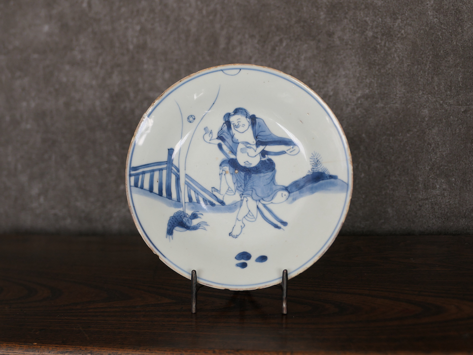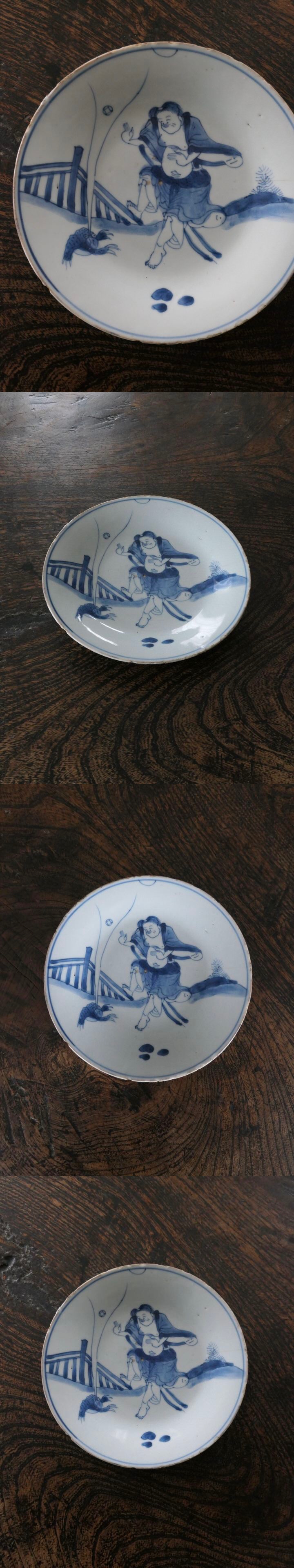古染付 蝦蟇仙人文皿