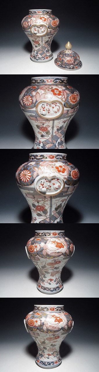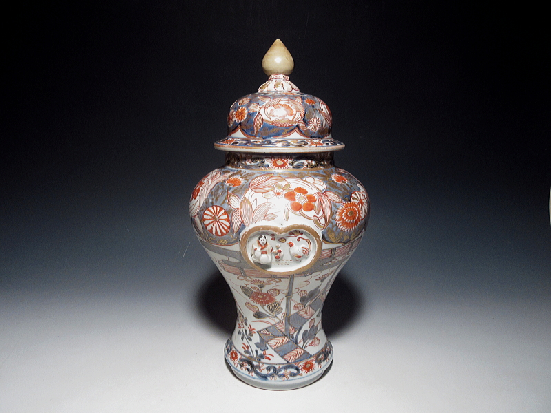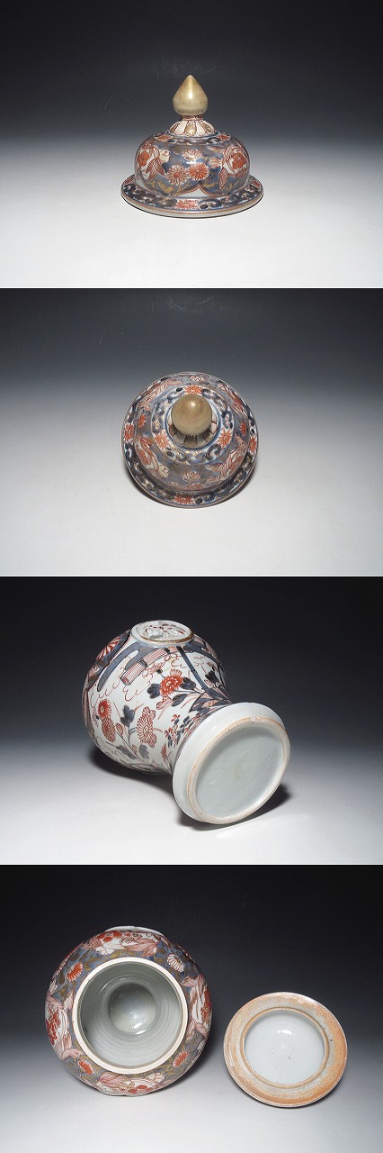 元禄期、東インド会社を通じて、ヨーロッパへ輸出された里帰り伊万里です。特筆すべきは、2点です。1点目は、共蓋が現存していることです。沈香壷は、染付、色絵を