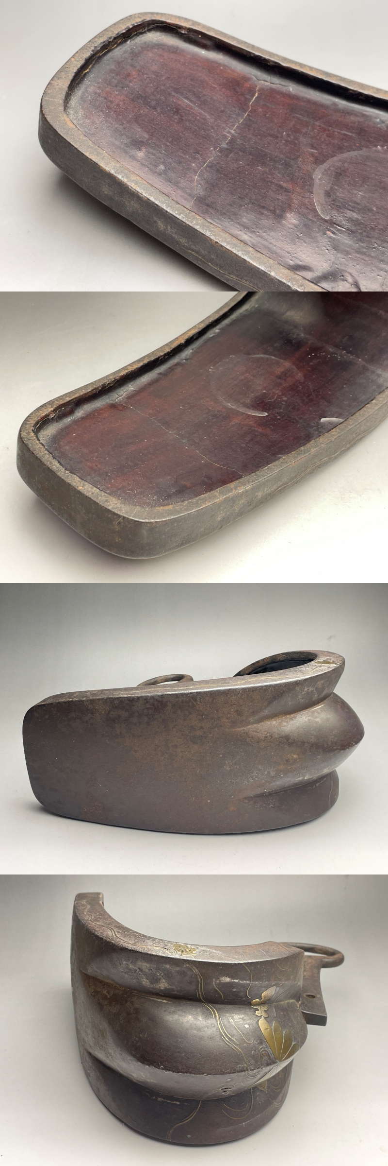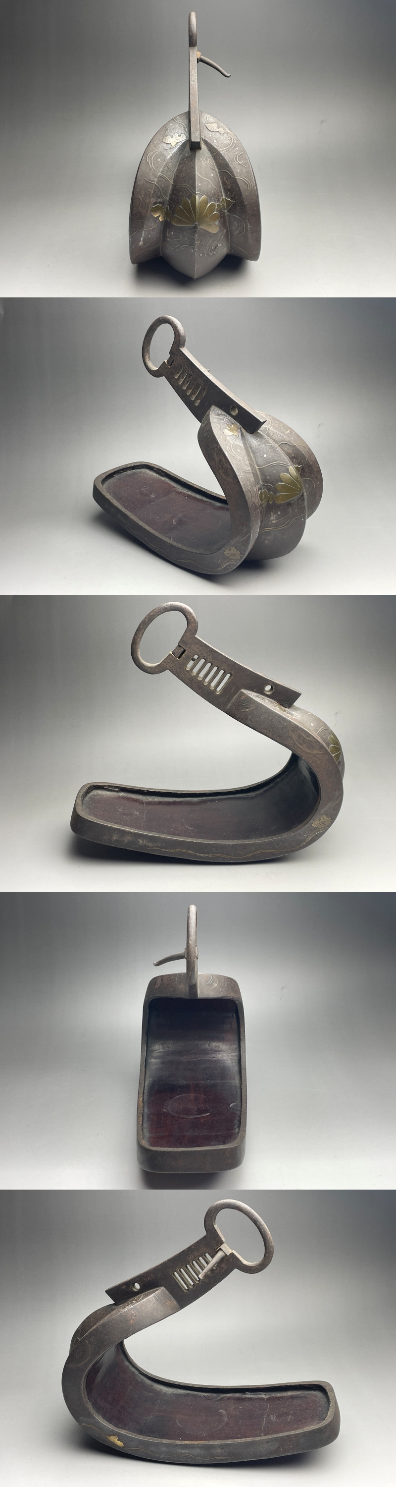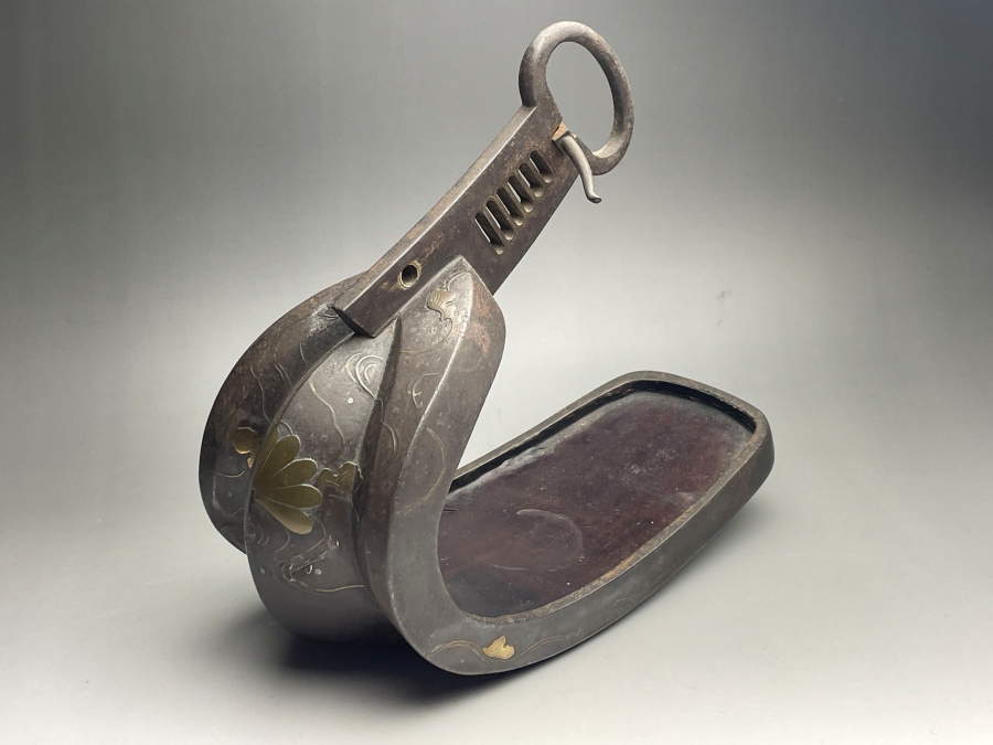 真鍮、銅の象嵌で菊水を描いた鐙です。