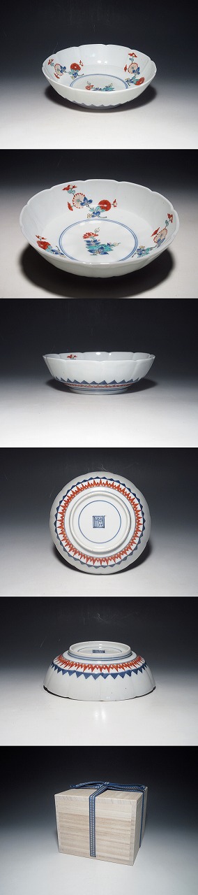 通りです。本品の特筆すべき点は、その裏面です。染付と赤絵を見事に組み合わせ、斬新ながら、モダンな印象です。このような裏絵付は、当方も初見です。ほぼ、類例はないと思われます。表、裏ともに、申し分のない最高レベルの柿右衛門作品です。