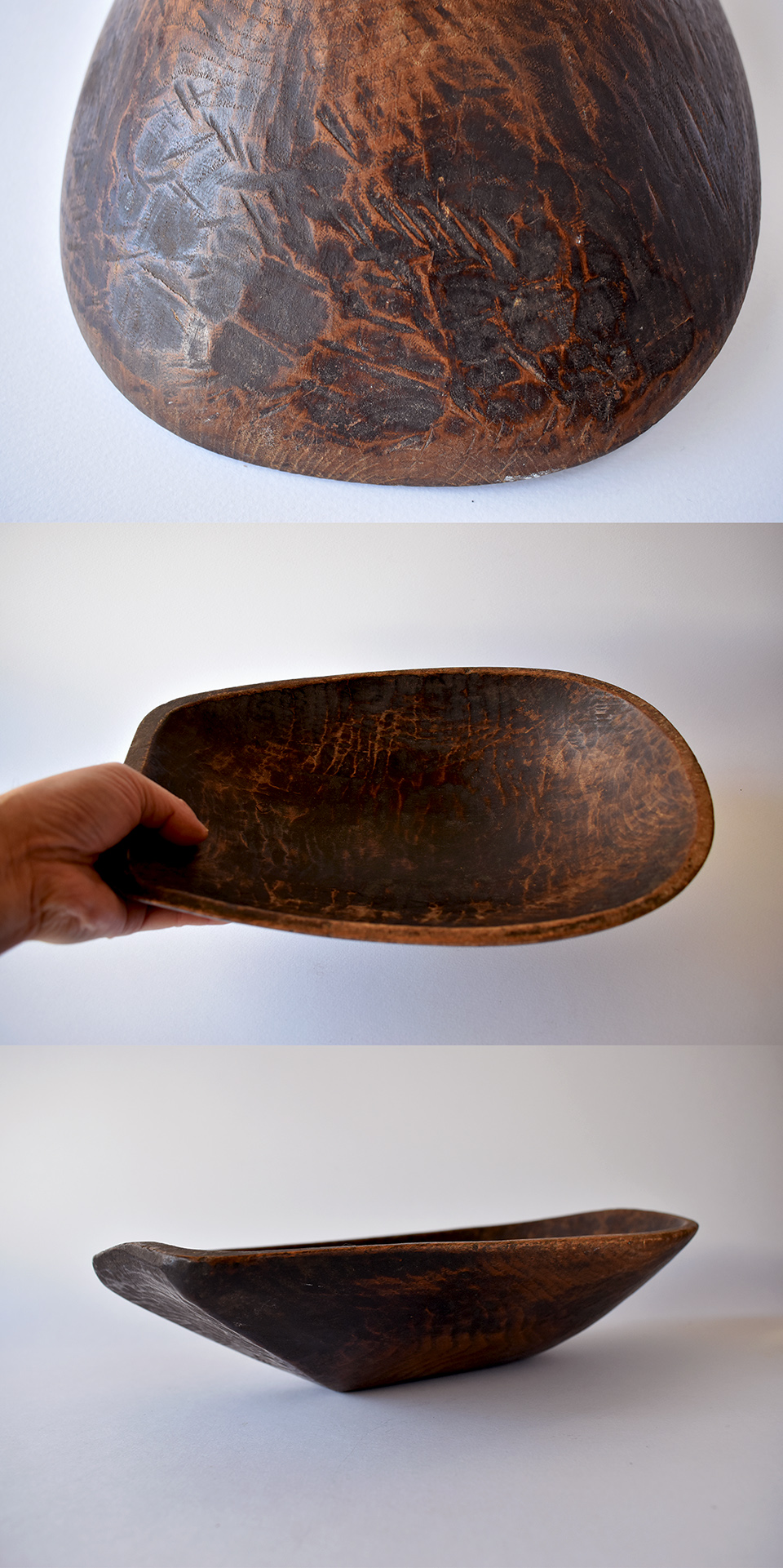 こちらの材は栗のようですね。特に鑿痕、斫り痕があちこち残っていてたまらない質感です。ザクザクと作っていた時の音が聞こえてきそうな一品です。