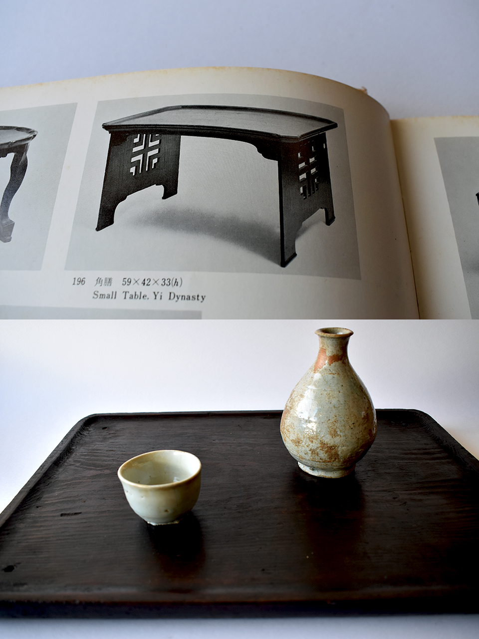 昔はこんな天板だけなんて商品として出荷していいものか?と思っていたのですが、昨今の木地盆ブームに引っ張られたのかどうか、とにかく今まで朝鮮美術をご存知なかった人にも使いやすい角盆として需要があるそうで、なかなかオークションなどでもいい値段になっているようですね。