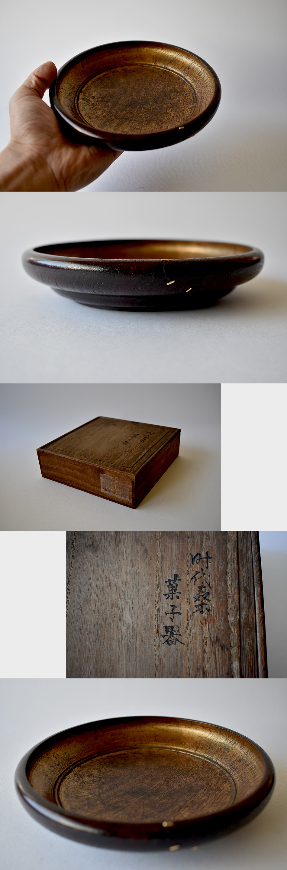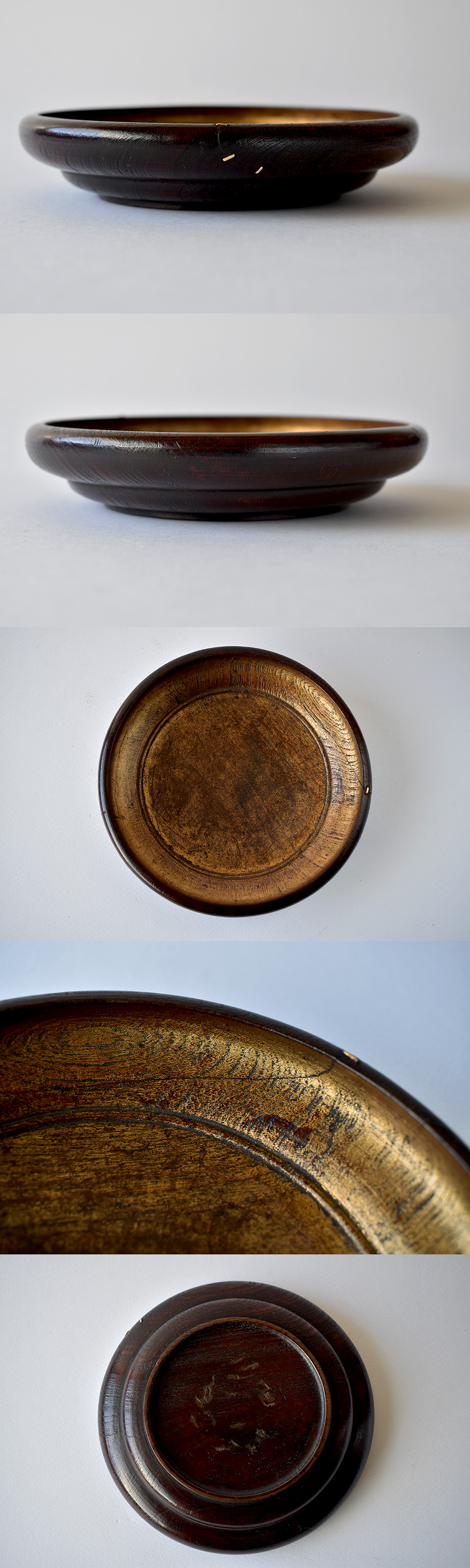 材は桑を使用しているようで、よく煎茶道では好まれる素材ですね。見込みには金泥を拭き漆のように塗っているのでしょう。チリチリとした木目の凹凸に金が入り込み得も言われぬ風情を醸し出しています。