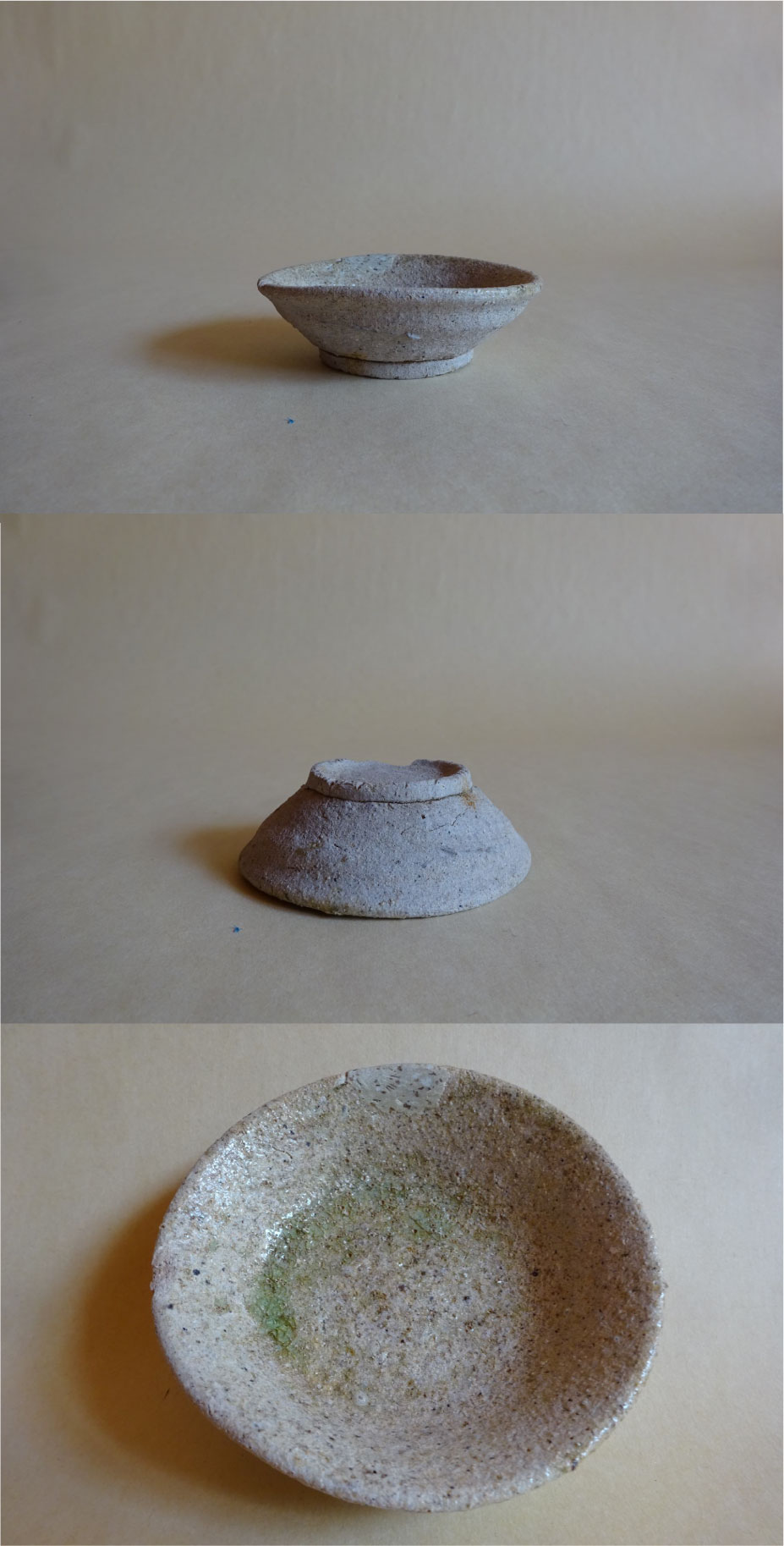 【説明】 山茶碗とは、平安末期から室町時代にかけて東海地方で大量生産された無釉の庶民向け陶器を指します。山林の窯跡から大量に出土するため、また、山に捨てられていたため、山茶碗と名付けられました。碗、皿、小皿が多く、当時の庶民の食風俗を物語る物の一つです。