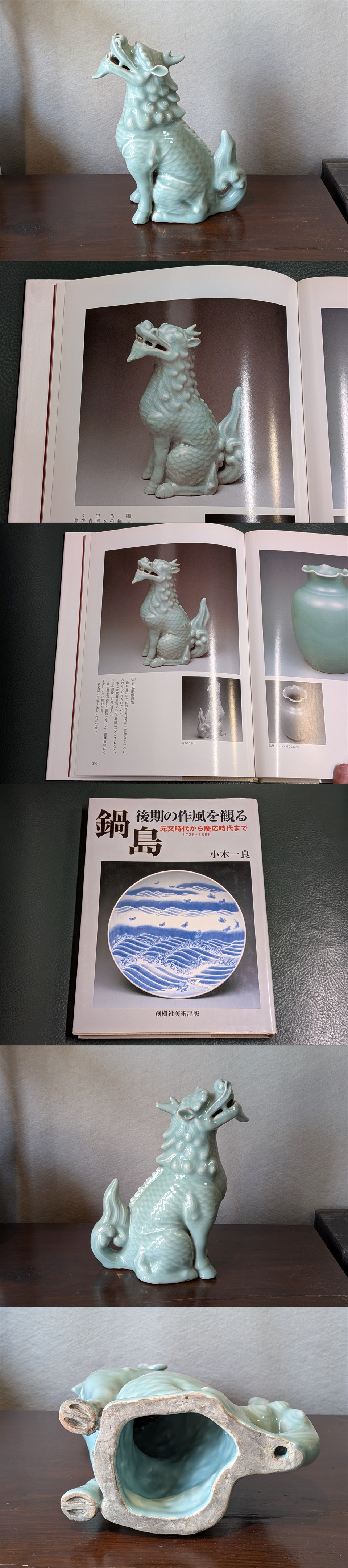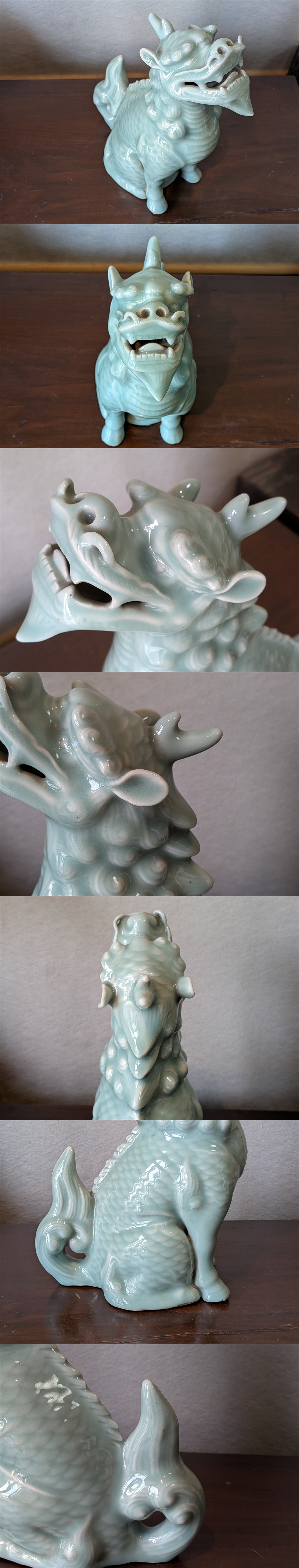 鍋島青磁らしい青磁釉の多層がけされていますが、麒麟の表情がしっかり見えるのがポイント。