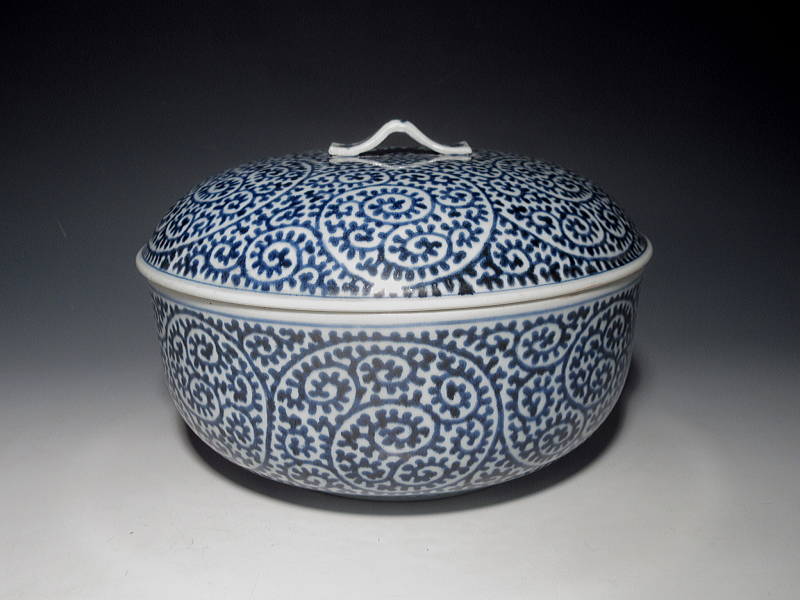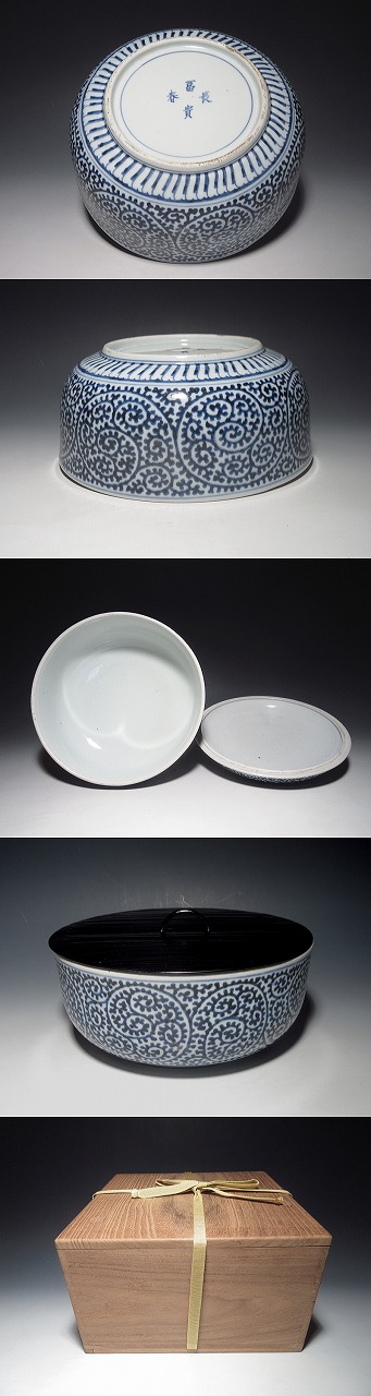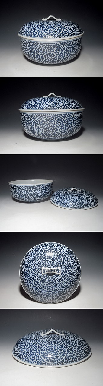 施されています。蛸唐草文も、にじみやかすれも見られず、最良の上がり・発色です。小傷はありますが、全体的には良いコンディションで、蓋が現存しているのも嬉しいです。前所有者が仕立てられたと思われる、塗りの替え蓋が付随します。