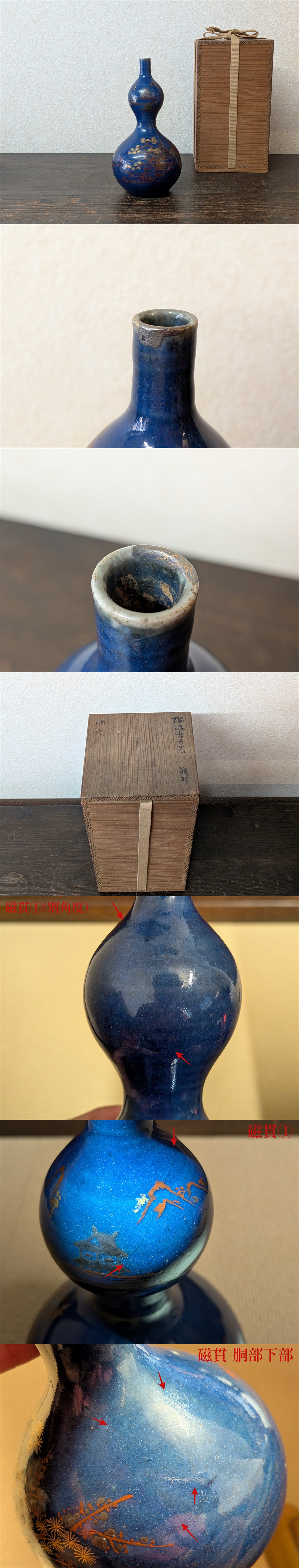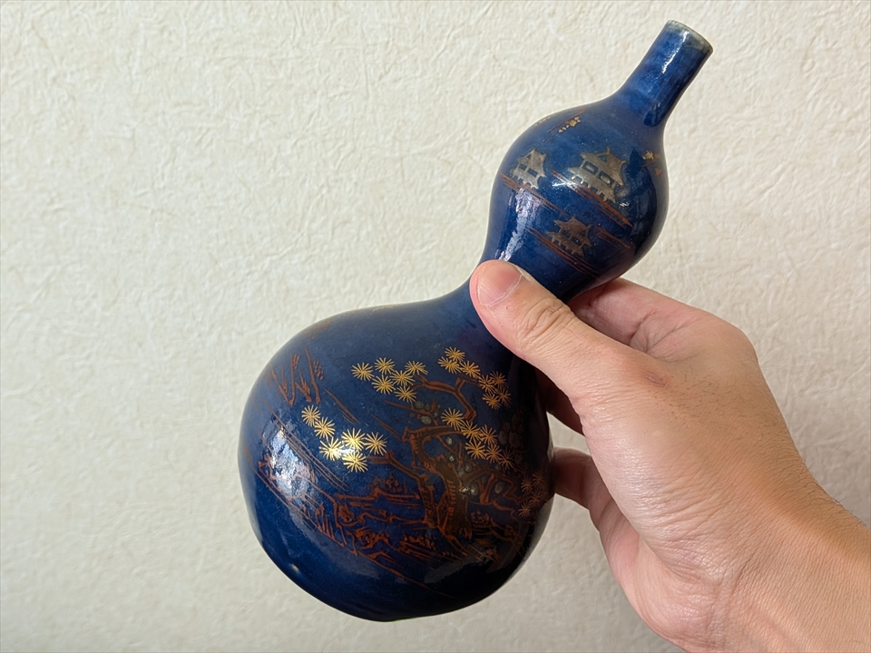 また「瑠璃古九谷 瓶形 酒次」とありますので、酒器として使っていたのかもしれません。