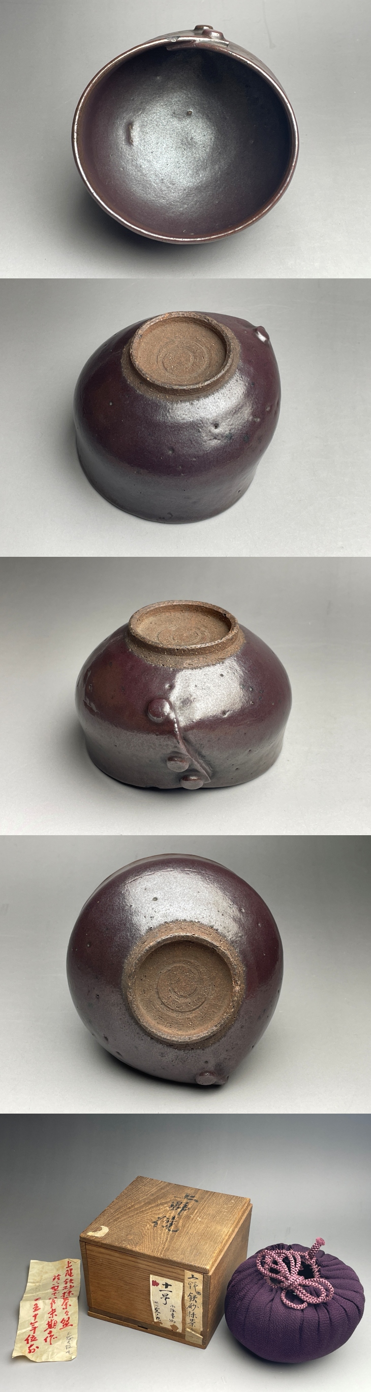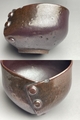 珍しい形をした上野焼、鉄砂の茶碗です。