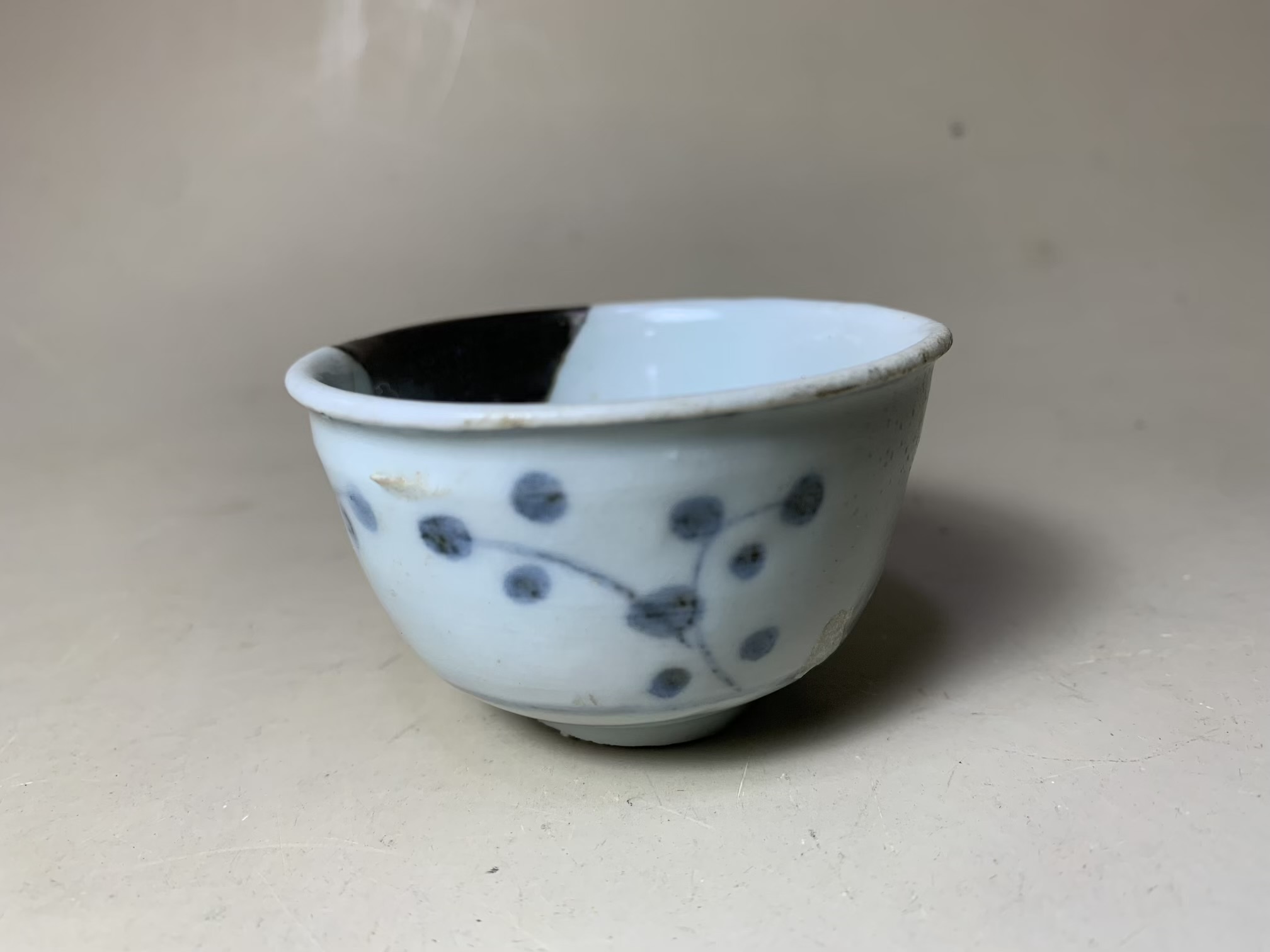 『初期伊万里 なずな紋 盃/燻銀直し/箱付き』