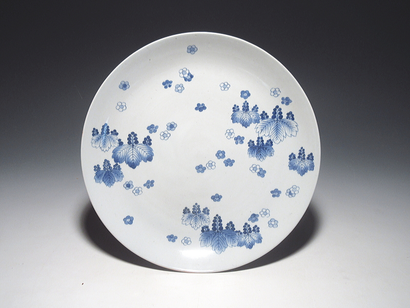 ごく薄手に成形された七寸強の画面に細密な描写が施されています。呉須の濃い薄いを巧みに使い分け、呉須ぼかしも駆使し、華やかさと立体感を演出しています。
